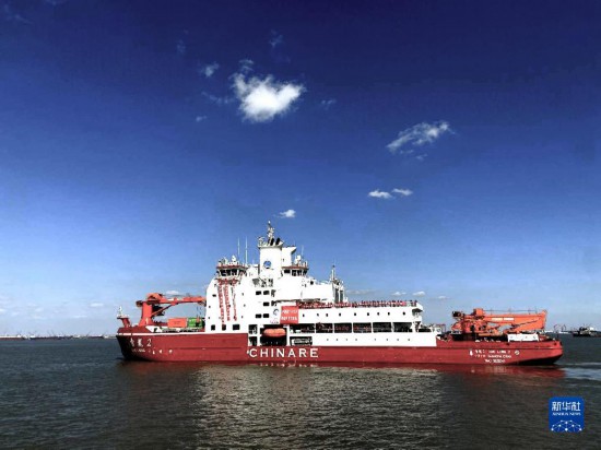 2020年11月10日,中國第37次南極科學考察隊乘坐“雪龍2”號極地科考破冰船從上海起航,奔赴南極執(zhí)行科學考察任務,這是“雪龍2”號極地科考破冰船駛離碼頭。新華社發(fā)(中國極地研究中心供圖)