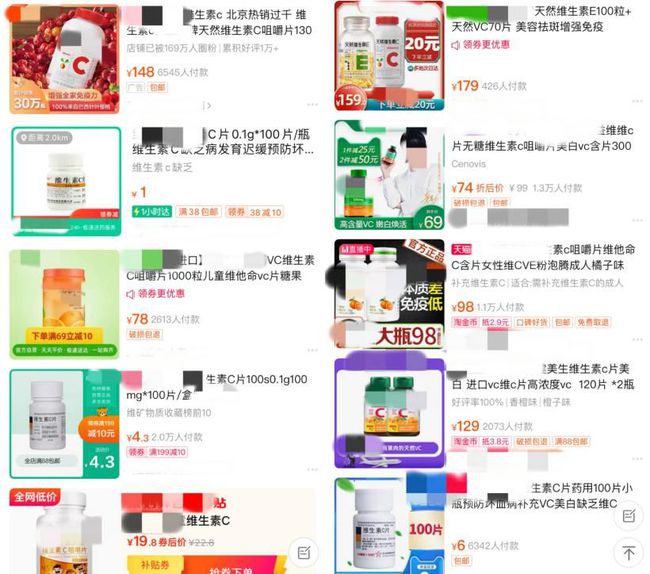 一瓶100片的維生素C保健品,如果每片含0.1g的維生素C,總共的維生素C成本也不會超過五毛錢。當(dāng)然,產(chǎn)品里的輔料,產(chǎn)品的包裝、保存、銷售等,一層層加上去,真實的成本也不會高到哪里去。因此,維C的定價才會出現(xiàn)這樣的巨大波動。